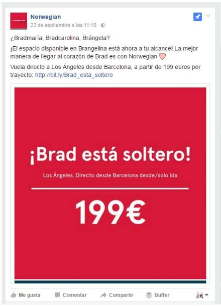 Ejemplo de márketing en Redes Sociales, éste visto en concreto en Instagram. Genial, dirigido a un público joven, informado, activo en las redes y con ingresos medios. Han sido rápidos de reflejos: hace poco que se anunció el divorcio de la pareja, y jugar con los nuevos posibles nombres me parece un truco genial.